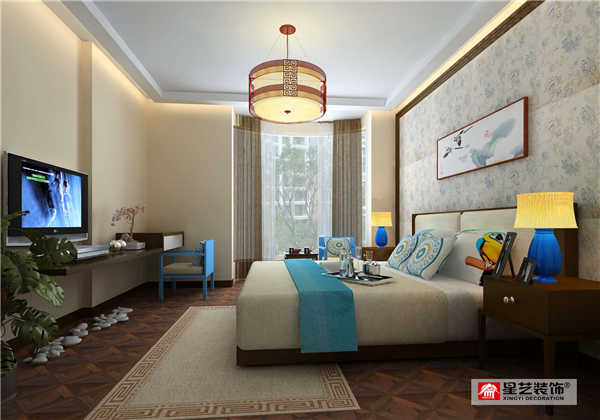 東輝國際現(xiàn)代中式臥室效果圖