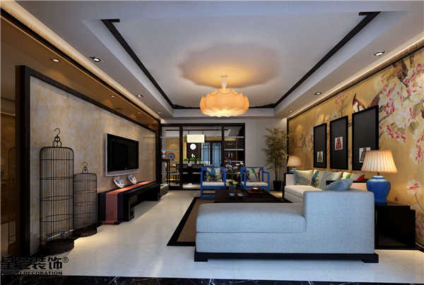 東輝國際現(xiàn)代中式客廳效果圖
